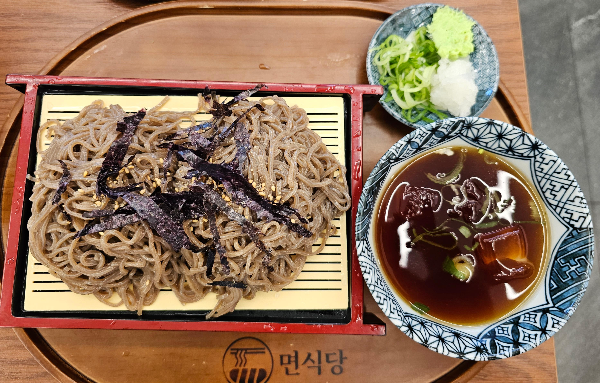 면은 두덩이 나왔고, 와사비와 무 그리고 파가 들어간 육수에 담가서 먹으면 어릴 적 많이 먹던 백화점 식품코트 소바 추억이 떠오르는 맛이었습니다.