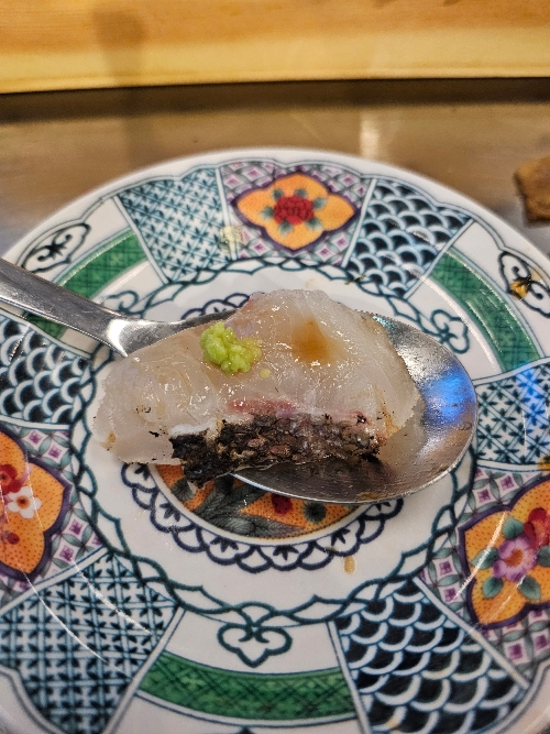 개인적 단점은.. 저 소스같이 올라가져 있는 젤리가 시큼한 맛으로 제 입에는 사시미랑 안 어울리는 느낌이었습니다.