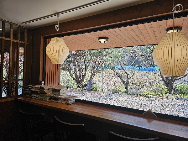 체크인 하는 라운지는 1층이라고 되어있어 주차하시는 곳이 2층 한층 내려가셔서 1층에서 체크인하시면 됩니다. 체크인 하는 로비에서 밖의 풍경이 고즈넉하고 참 좋습니다.