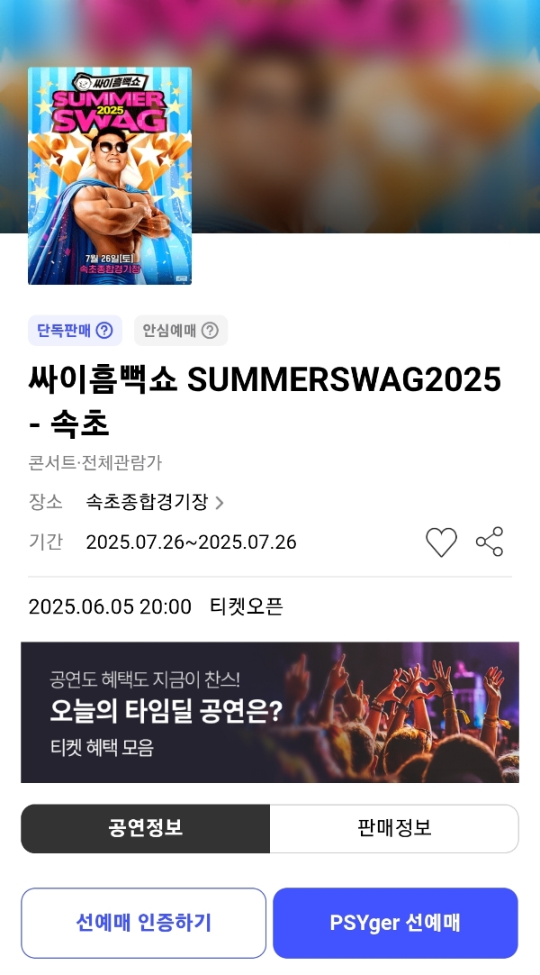 | 2025 싸이 흠뻑쇼 Open 사전예매 티켓팅 방법 (3) | 2025.05.12 |