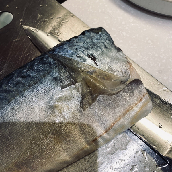 위에 토치질 끝난 고등어를 먹기 좋은 사이즈로 잘라주었어요!