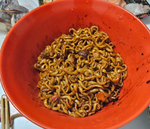 짜파게티 하나 끓여서 탄수화물로 속을 눌러주었습니다.