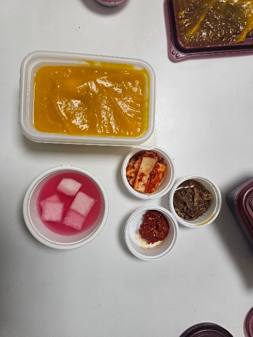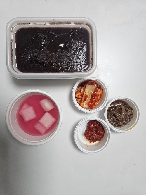 우선 인상은 직접 끓여서 파는 곳과는 확실히 다르다는 느낌이 들었어요. 첫인상은 건강검진 가서 검진 후 주는 짜서 주는 죽 느낌... 먼가 열었을 때는 죽보다는 묵의 느낌이 강했어요