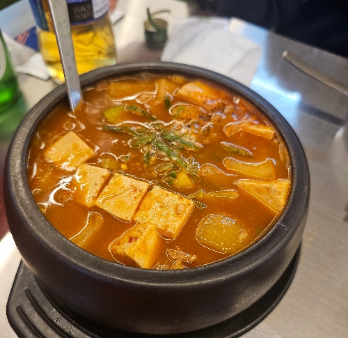 냉면이냐 술밥이냐 많은 고민을 했지만, 오늘도 술을 마실거 그래도 밥을 먹기로 결정했어요. 왜냐면 오뚜기식당이 된장술밥을 상당히 잘하세요~ 두부나 애호박같은 내용도 풍부하게 들어가있고, 고추도 잘게 썰어넣어주셔서 매콤하게 속을 사~~악 풀어줘요.