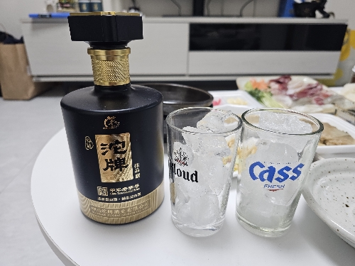 사시미에 첫 잔은 타패사득주 52도 고량주로 선택했습니다. 데일리샷에 공동구매로 저렴하게 구매했어요. (24,400원)