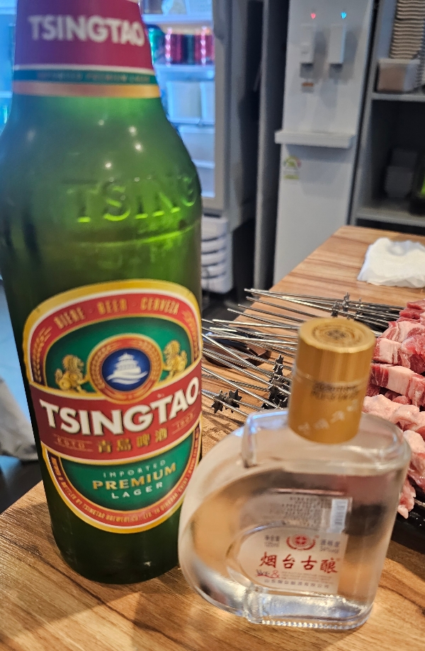 오늘의 주류는 양꼬치에 국룰조합이죠!!