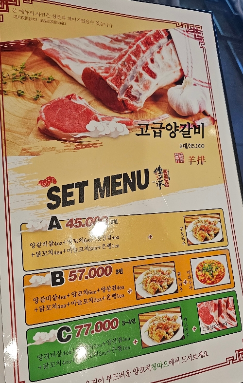 양꼬치 종류별로 세트메뉴가 구성되어있습니다.