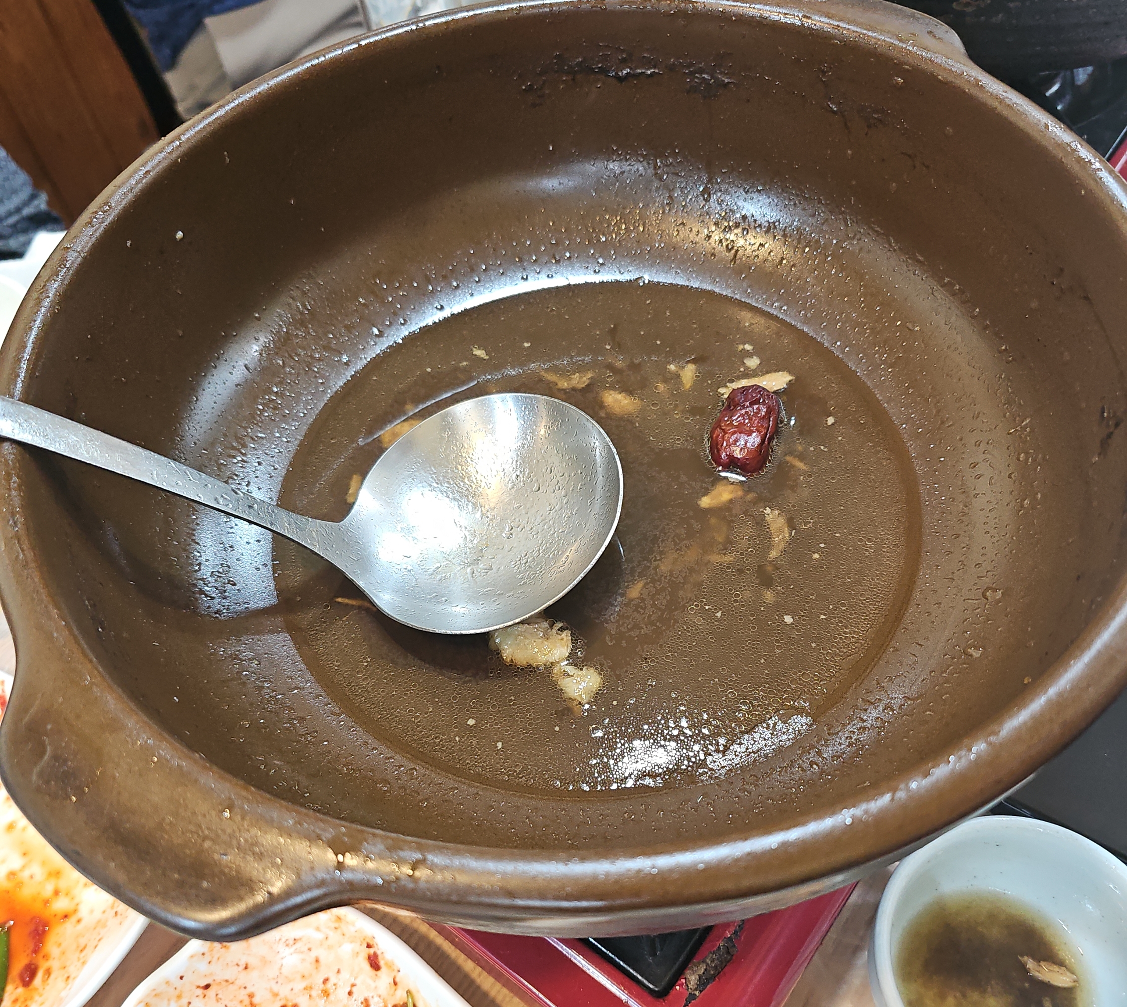 육수는 간이 안되어 있어 소금 간을 해주어야 하지만, 보약답게 그냥 기가 막혔습니다. 몸이 따뜻해지고 여행과 장거리 운전으로 긴장된 몸이 풀어지는 기분이었습니다.