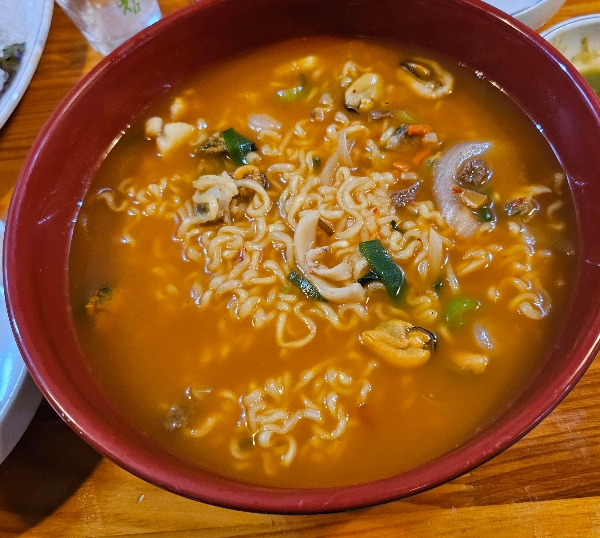 해물라면이지만 냉동홍합살이랑 칵테일새우 조금 들어간 라면이라서 약간 실망했지만, 그래도 느끼함을 사악 내려줘서 좋았어요!!
