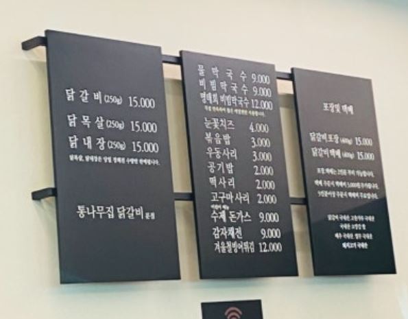춘천 통나무집 닭갈비 메뉴는 이렇게 굿성되어 있습니다!