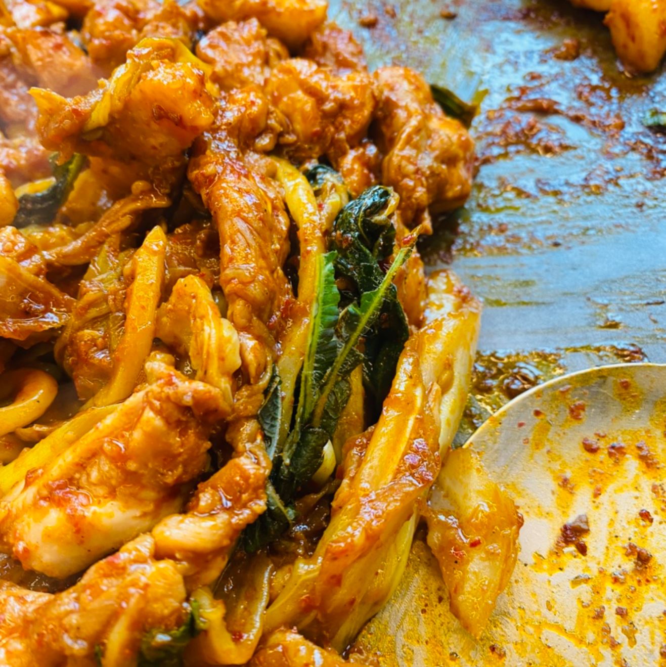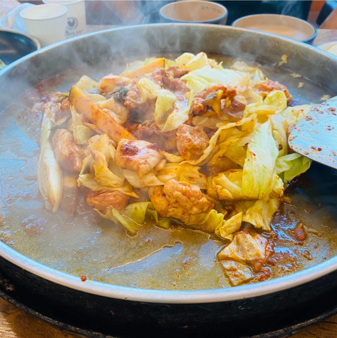 전날 캠핑 후 해장 닭갈비인데 이상하지 않을까 싶었지만 너무 맛있게 볶아졌고