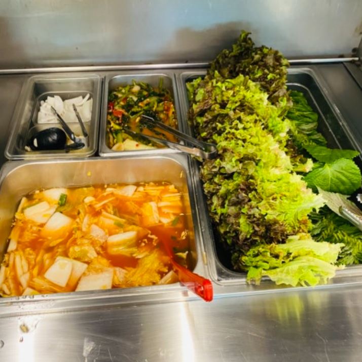 기본적으로 깻잎이 들어가있지 않은데 저는 깻잎 향이 좋겠다 싶어서 다 볶아주신 후에 셀프바에서 챙겨온 깻잎을 더 넣어서 살짝 볶아 주었고 적극 적극 추천드립니다!!!