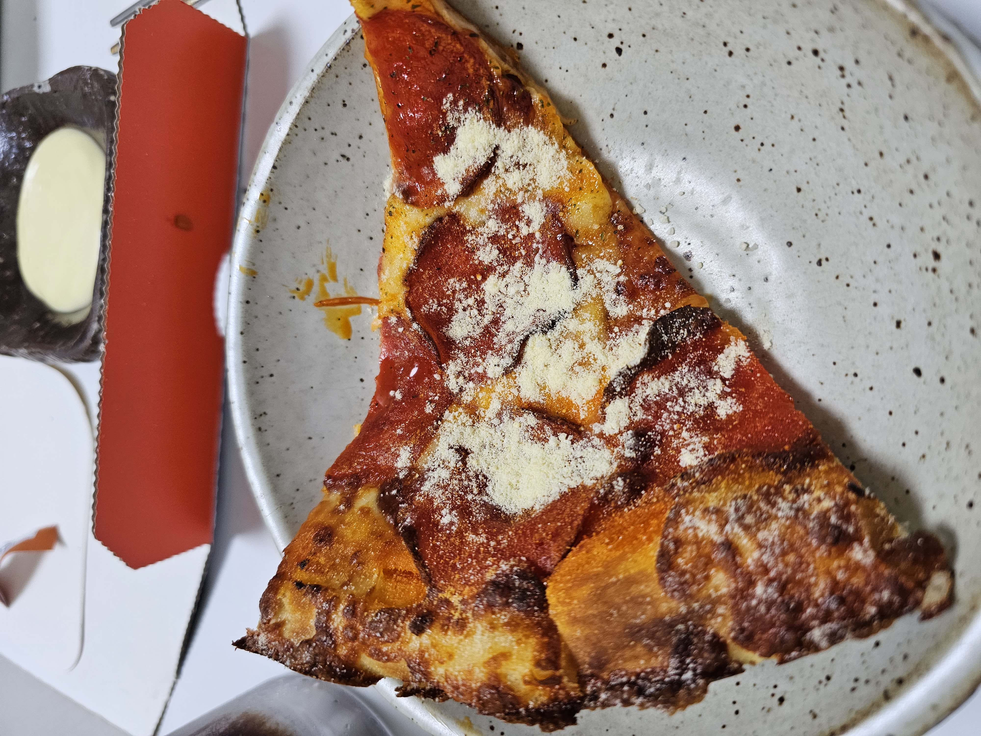 저는 항상 페포로니 피자를 먹는데, 도우의 바삭함과 적절한 간이 조화롭게 잘 이루어져있어요