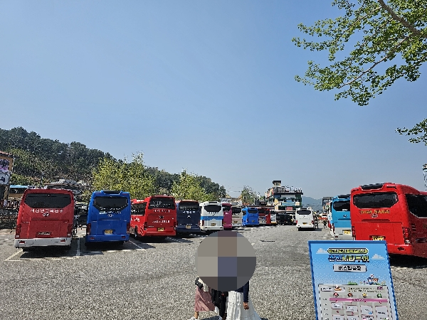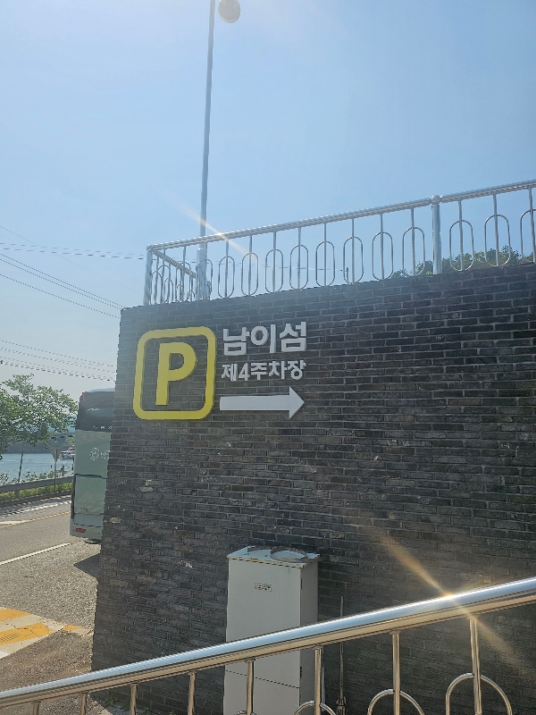 남이섬 입구 주변에는 주차장이 많지만 거의 만차예요! 그러니 마음 편하게 제4 주차장 이렇게 멀리까지 가세요! 걸어서 5분 정도이고, 걸으면서 경치도 보고 멀리 남이섬 들어가는 배도 보고 집라인 타고 들어가는 사람들 보면서 가다 보면 금방 선착장에 도착해요.